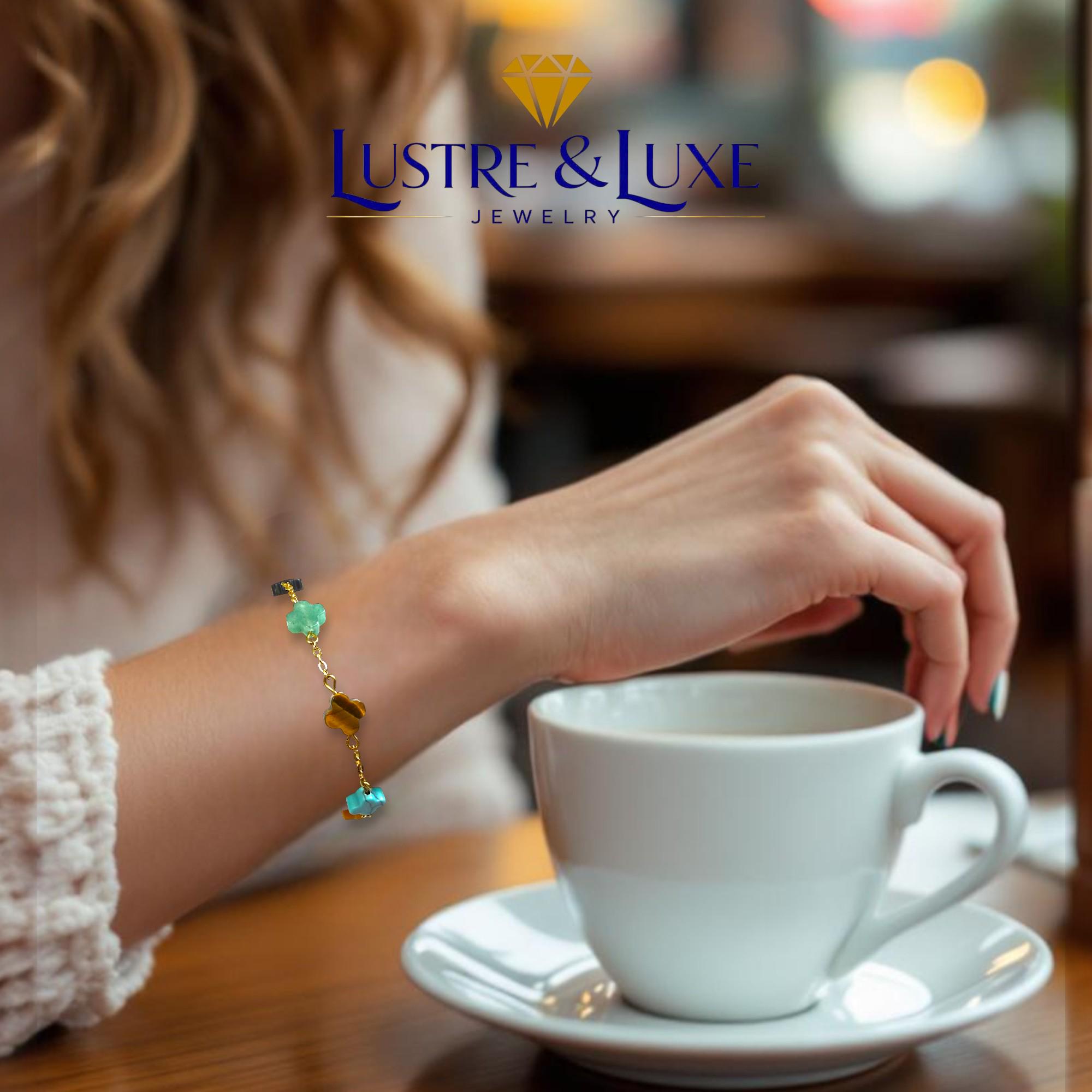 This bracelet is carefully assembled by hand using thoughtfully selected natural stones and high-quality gold-plated Stainless-Steel components. Each piece is individually inspected and finished to ensure quality and consistency.