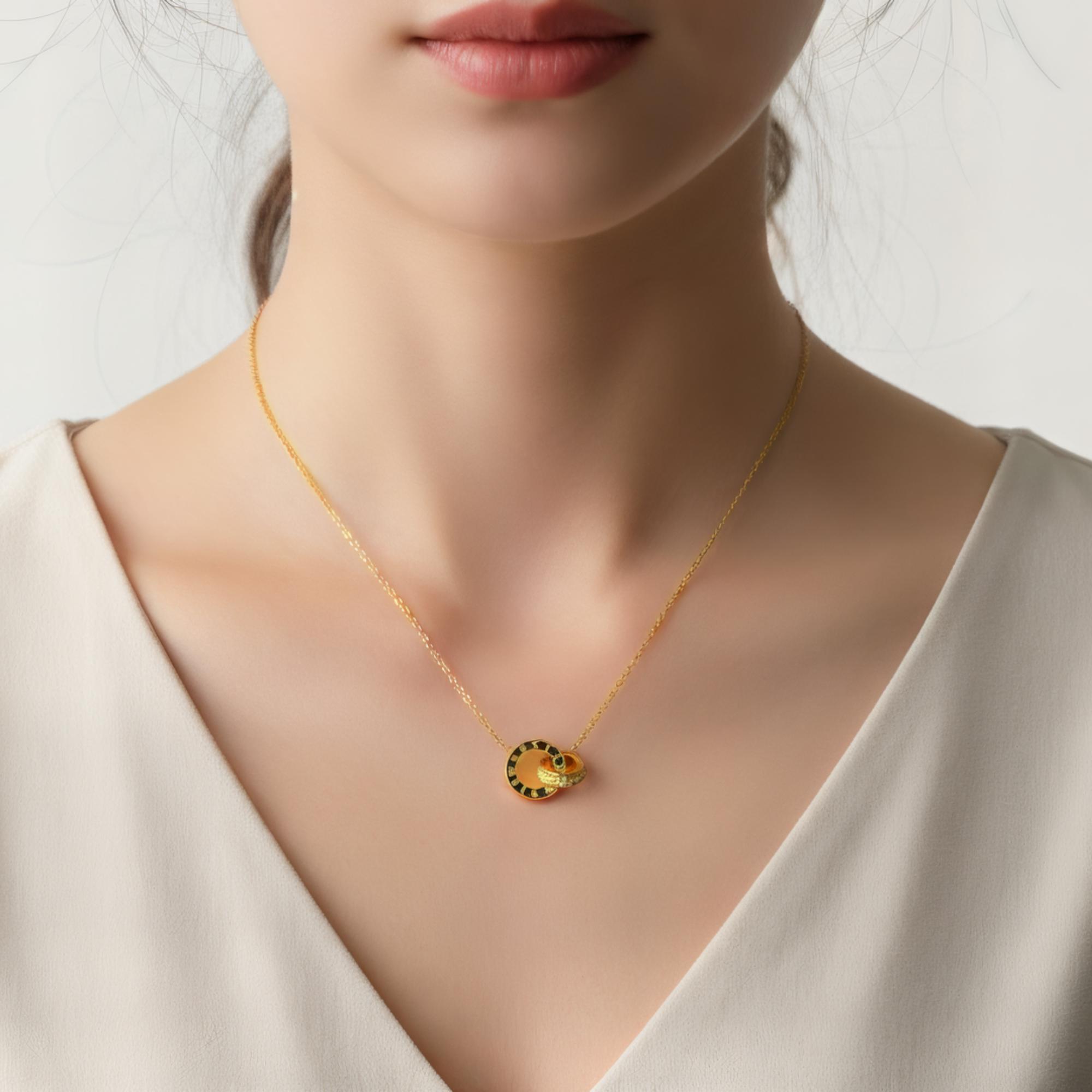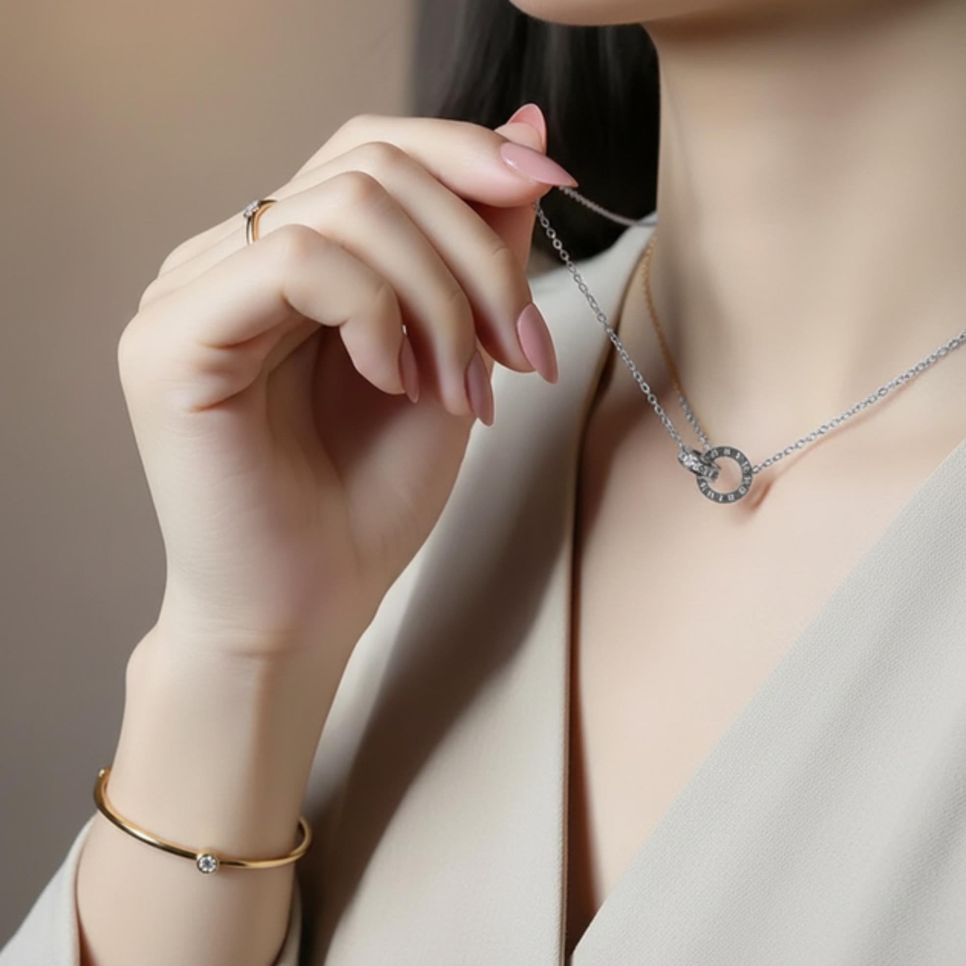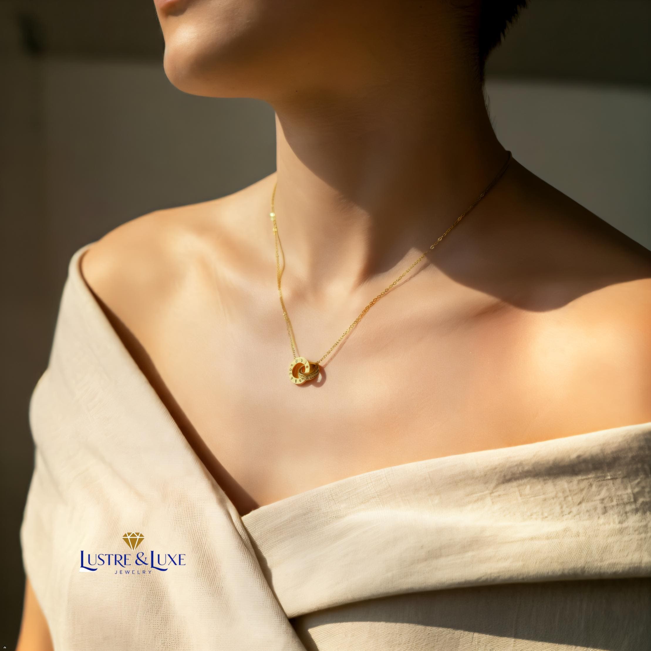 This elegant interlocking circle necklace symbolizes connection, unity, and timeless style. Designed with a modern minimalist look, it’s perfect for everyday wear or layering with other necklaces.