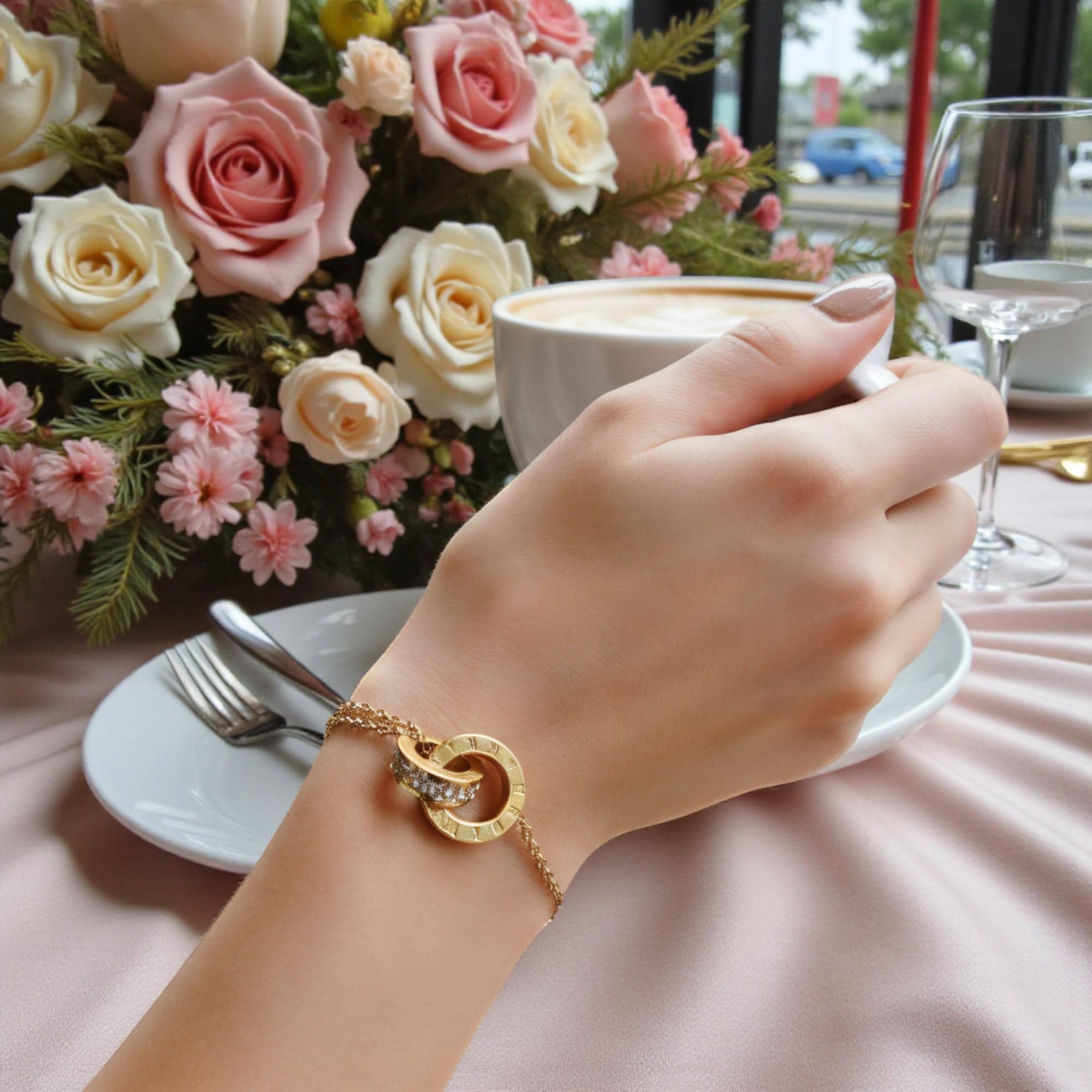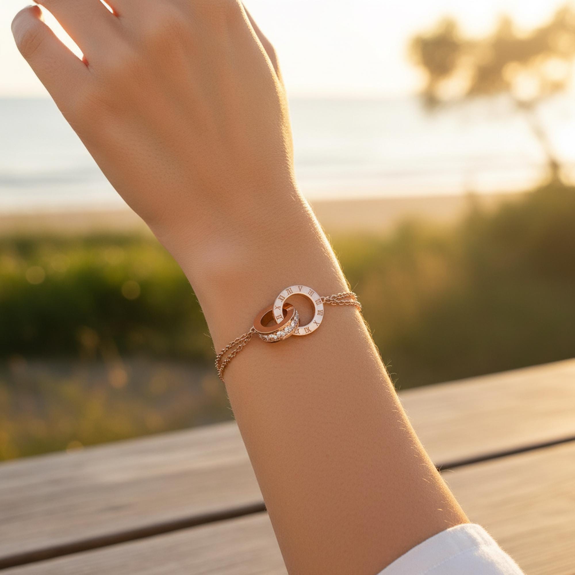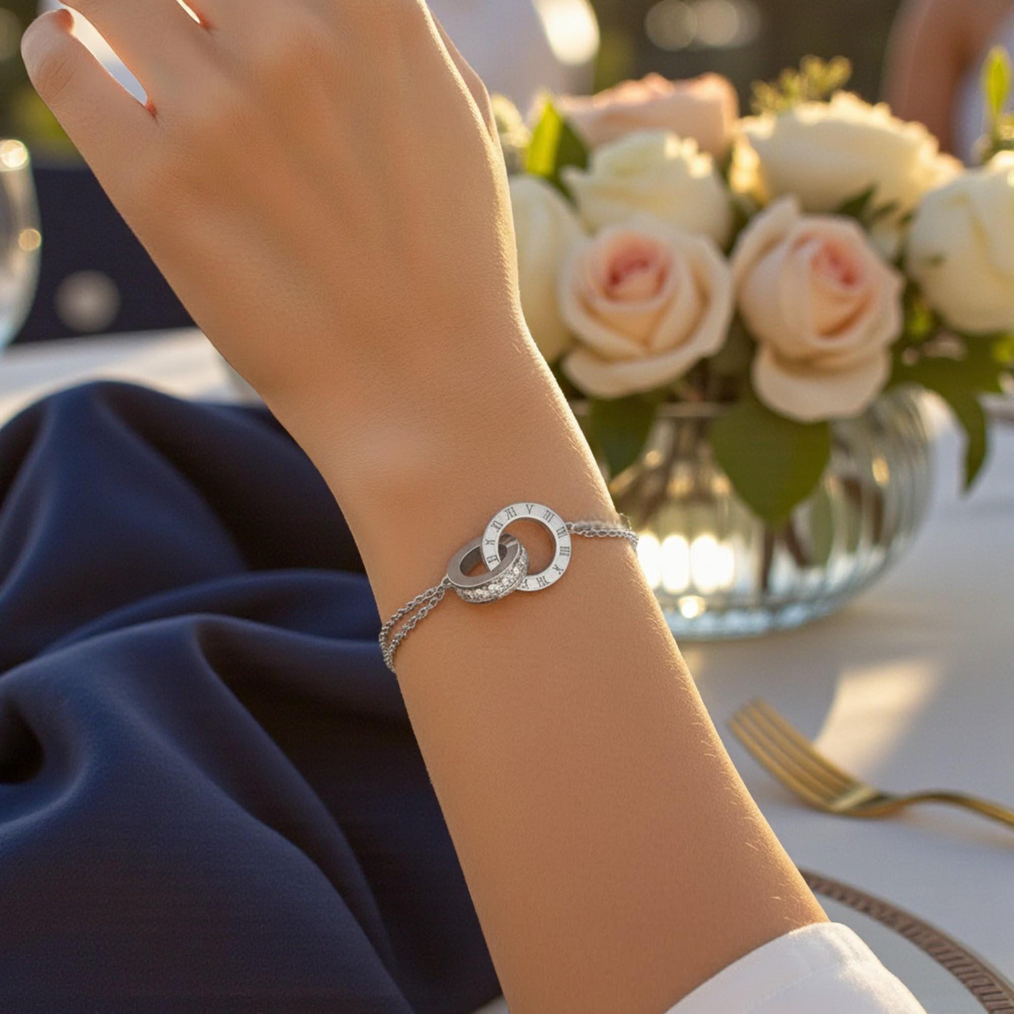 This elegant interlocking circle bracelet represents connection, unity, and timeless style. With its clean, minimalist design, it’s perfect for everyday wear or as a meaningful gift for someone special.