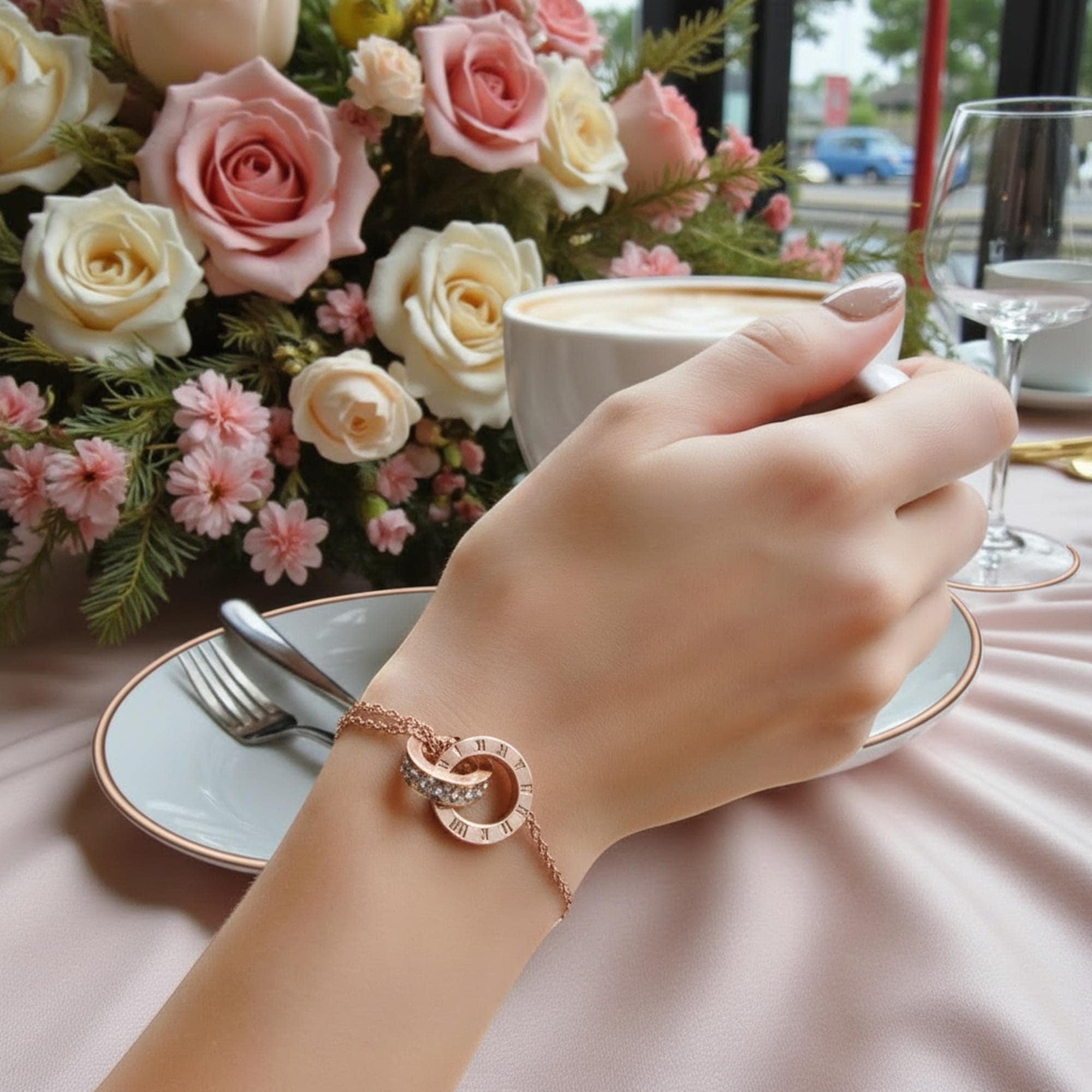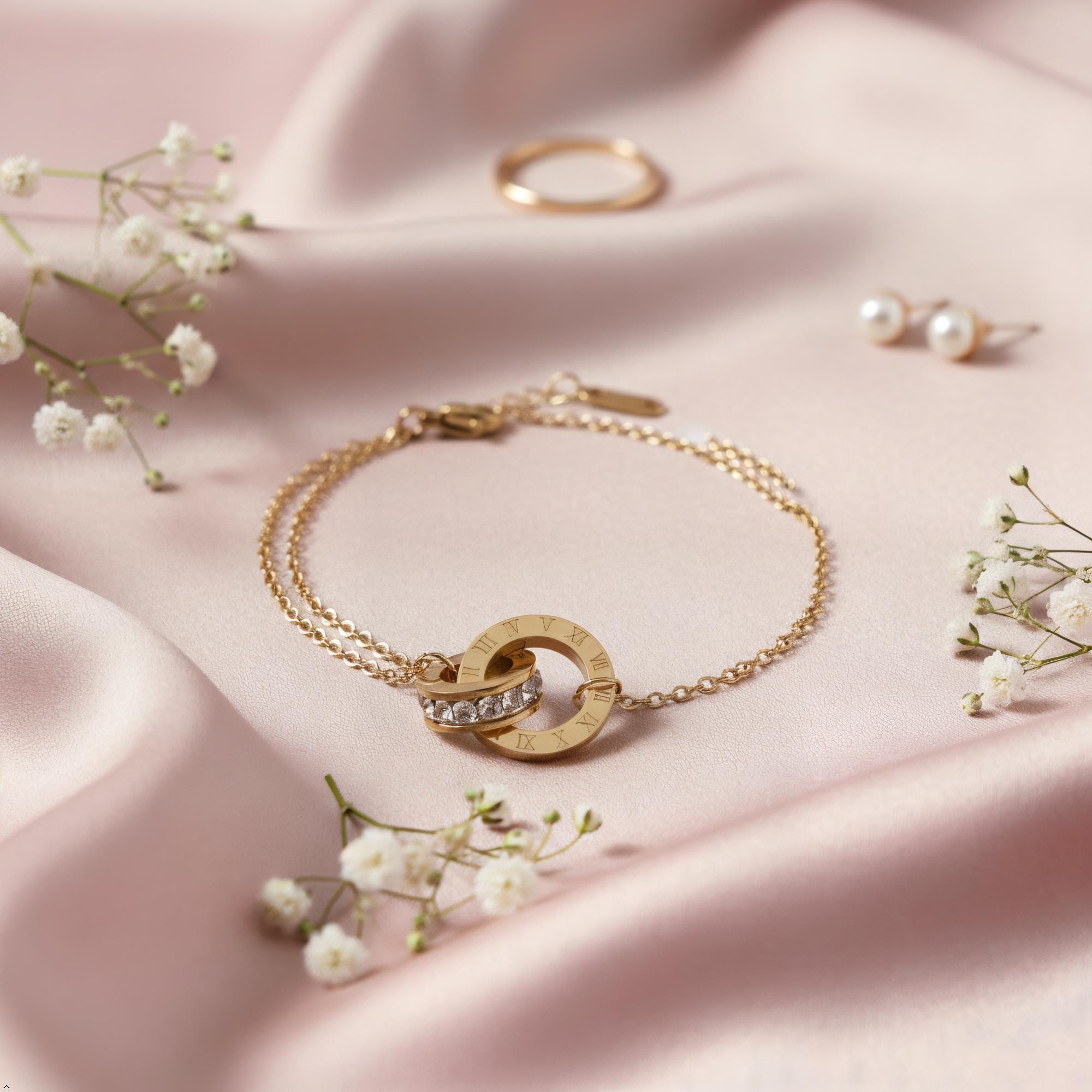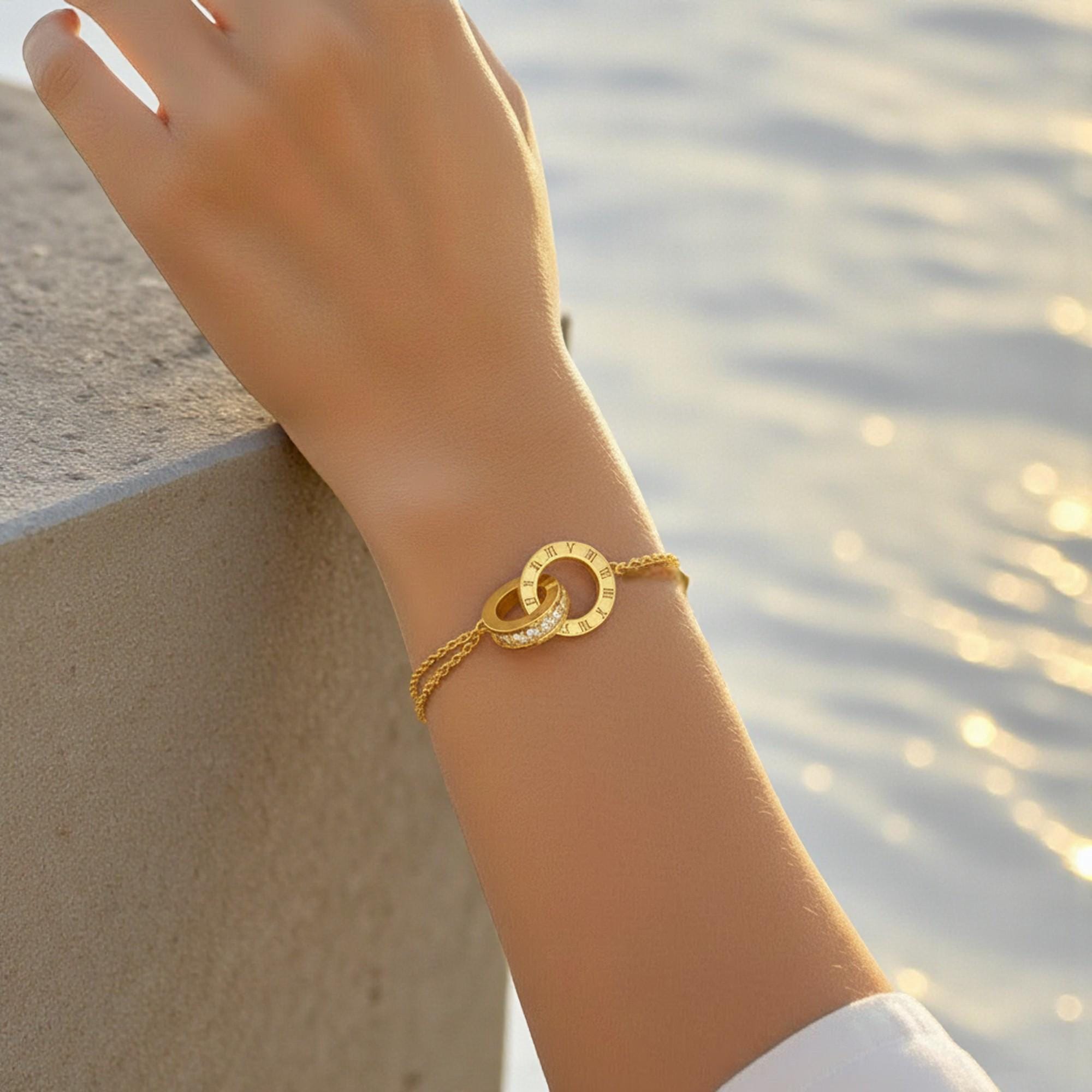 This elegant interlocking circle bracelet represents connection, unity, and timeless style. With its clean, minimalist design, it’s perfect for everyday wear or as a meaningful gift for someone special.