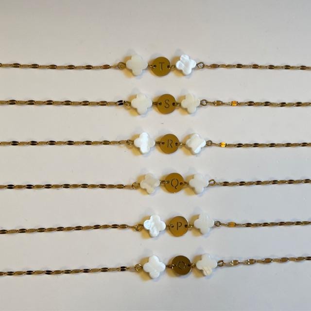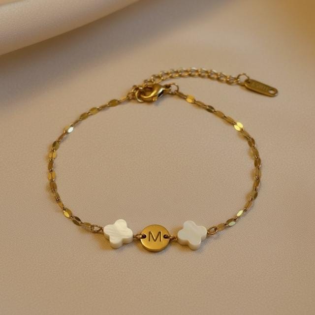✨ Initial Charm Bracelet with Mother of Pearl Clovers ✨