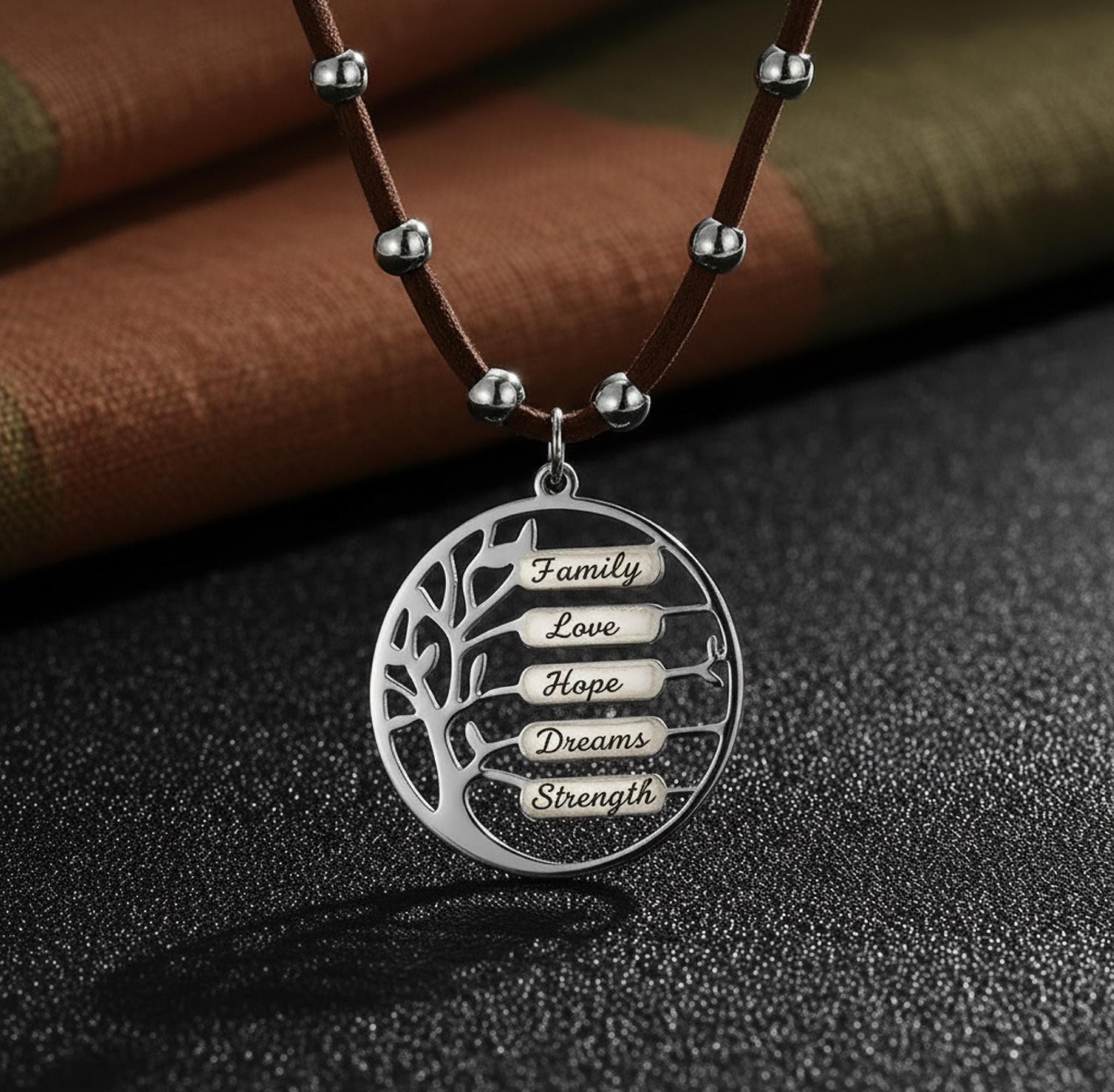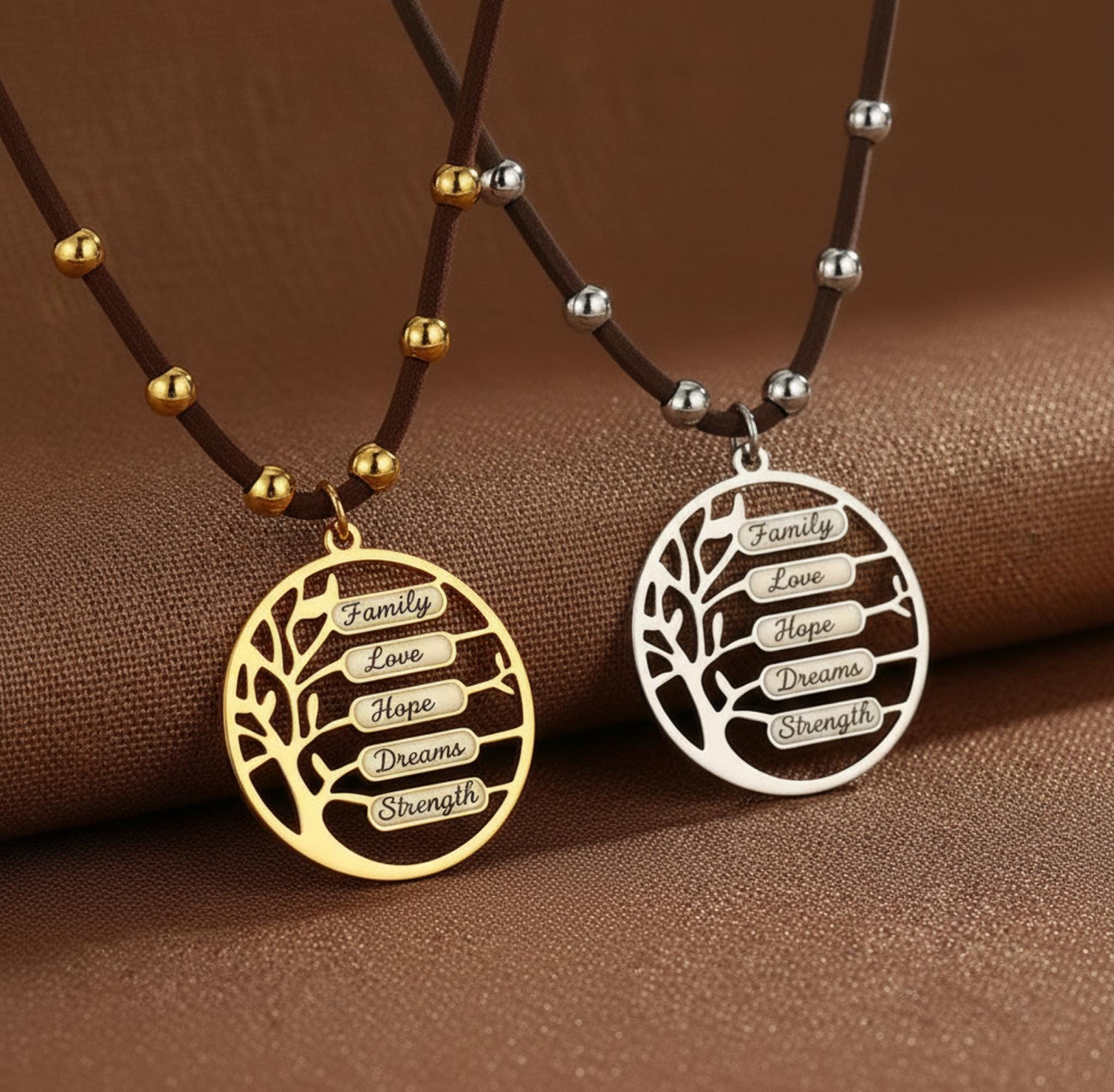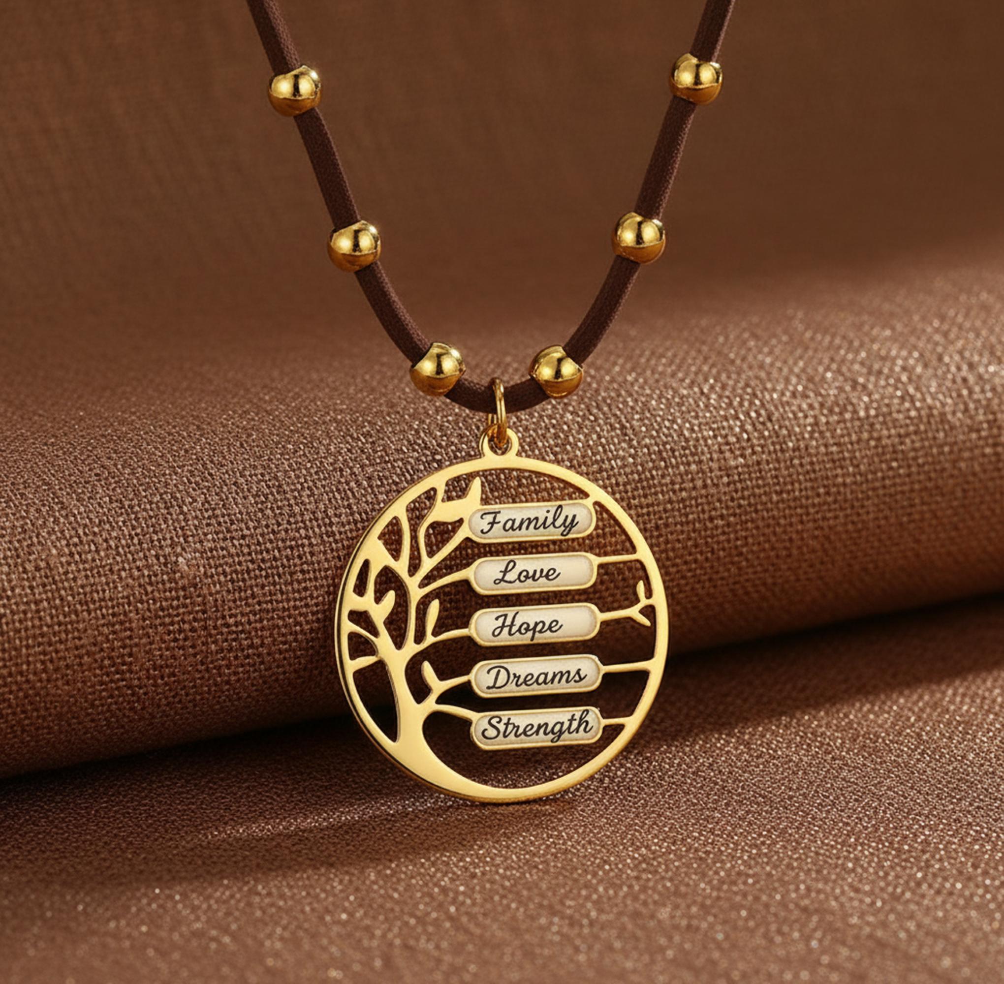 This personalized Tree of Life necklace is engraved with the names that matter most — children, grandchildren, or loved ones — symbolizing connection, strength, and unconditional love.