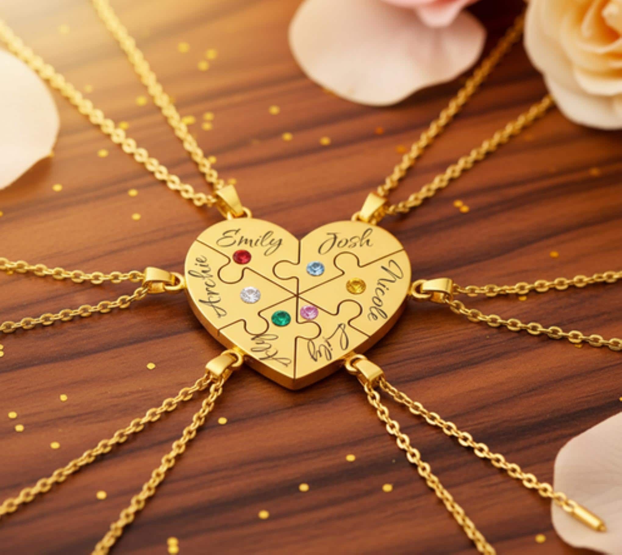 Create a beautiful symbol of family love with this Personalized Heart Puzzle Necklace.