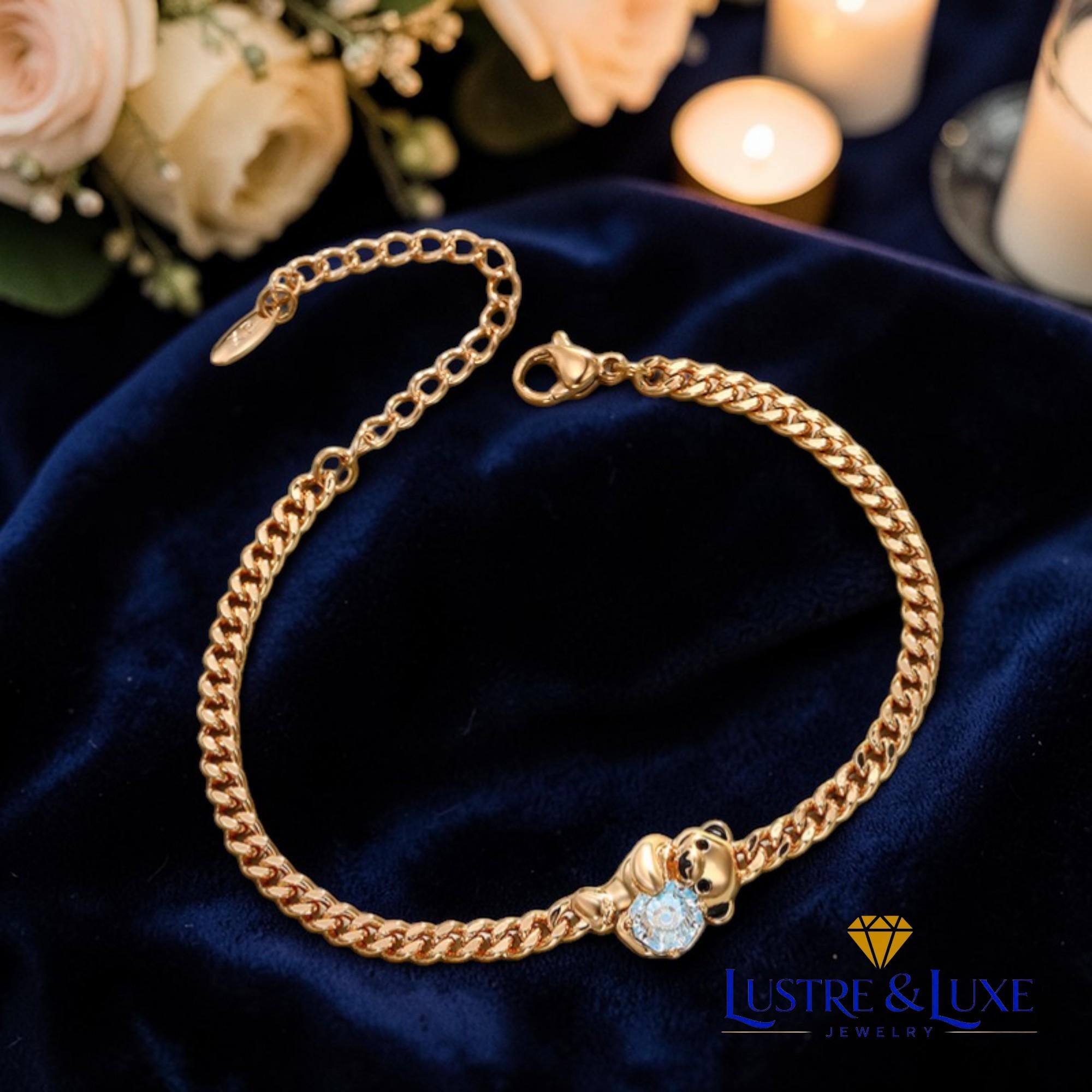 This delicate bracelet combines playful design with elegant style, making it perfect for everyday wear or as a thoughtful gift.