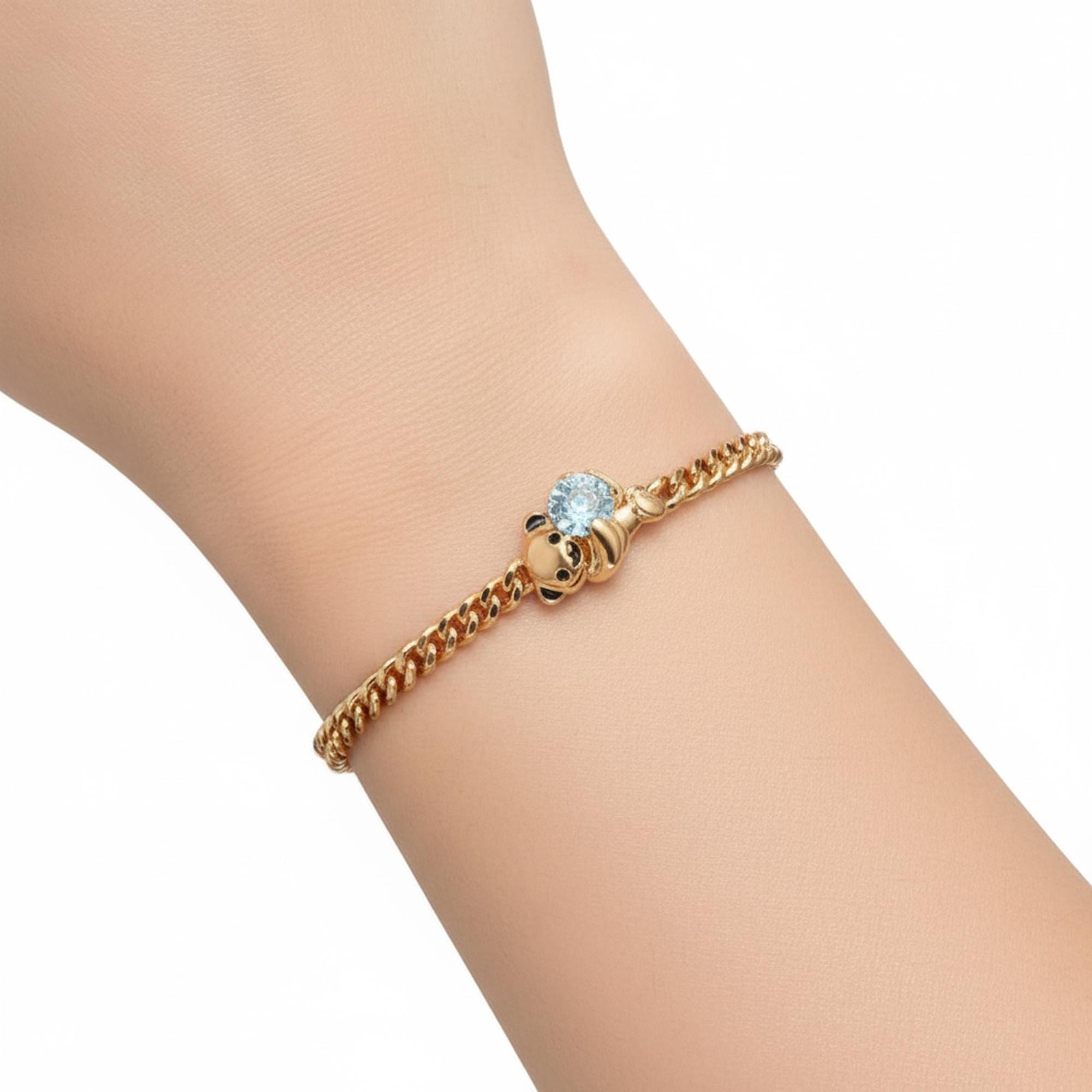 Add a touch of charm and sweetness to your jewelry collection with this beautiful gold plated teddy bear bracelet, featuring a sparkling crystal accent.