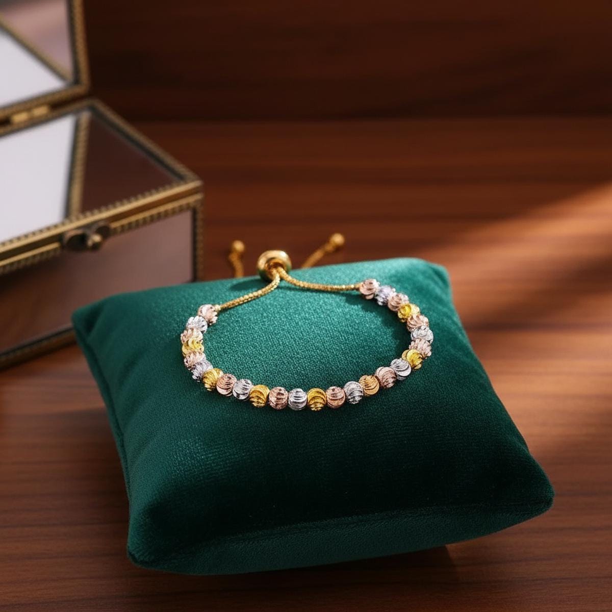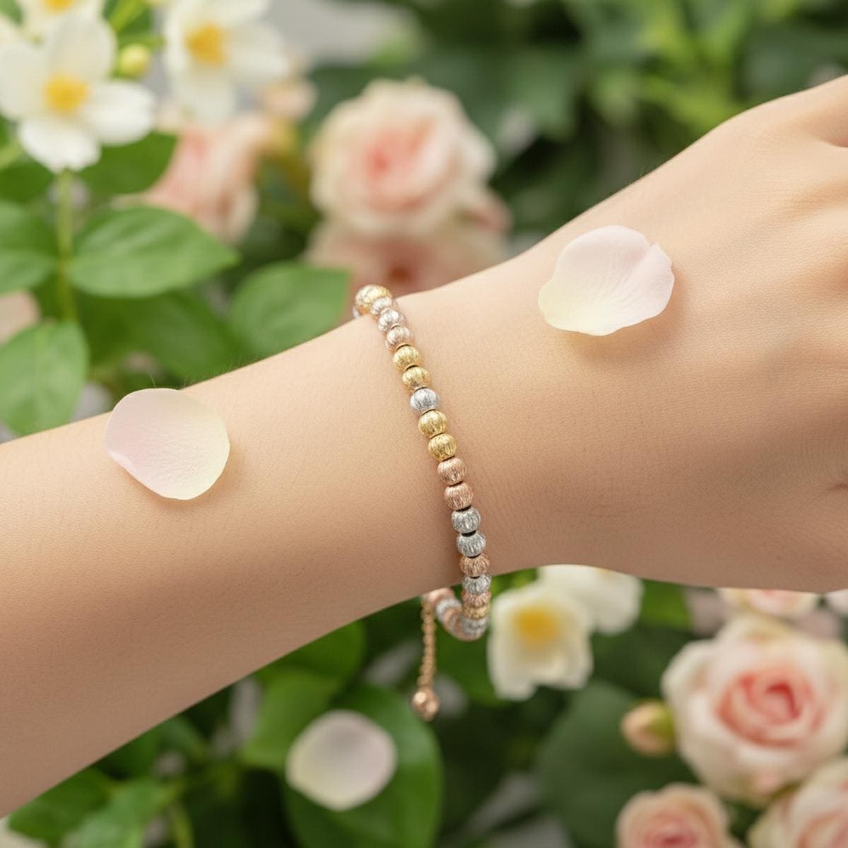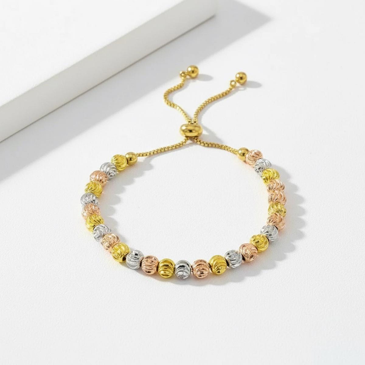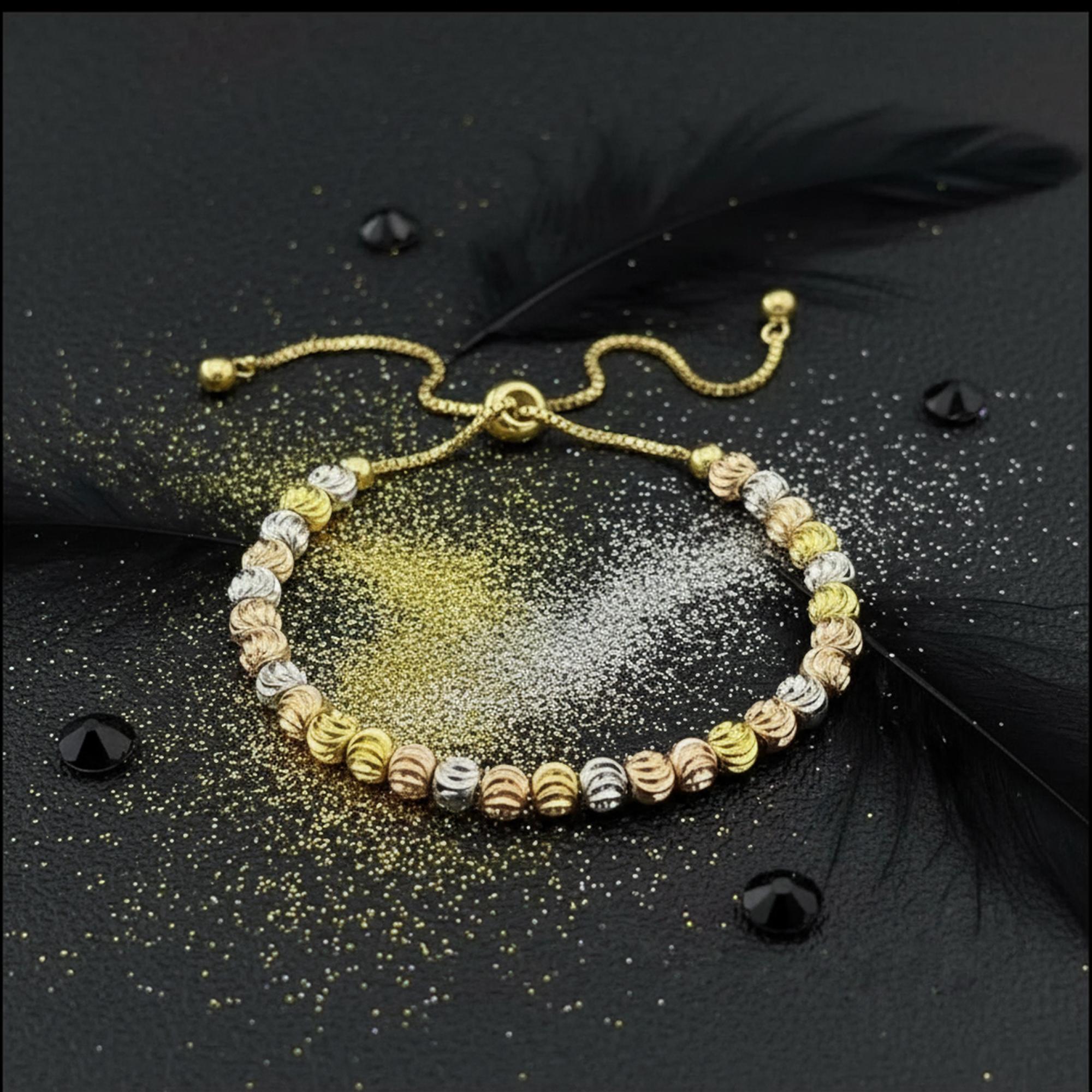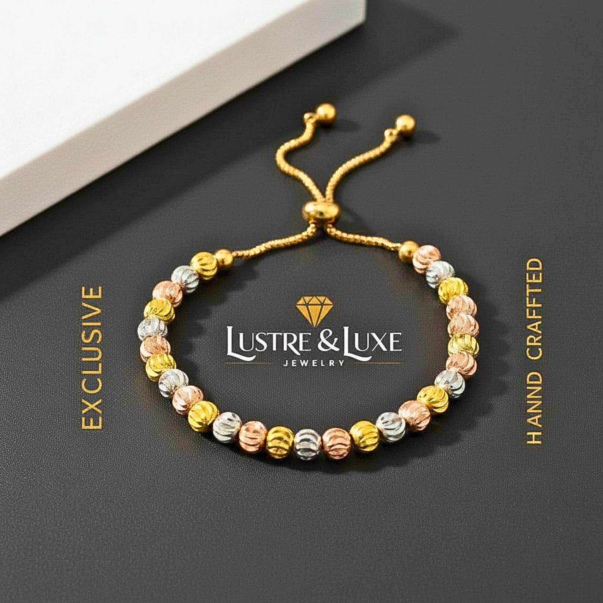 ✨ 3 Tone Adjustable Beaded Bracelet – Everyday Elegance