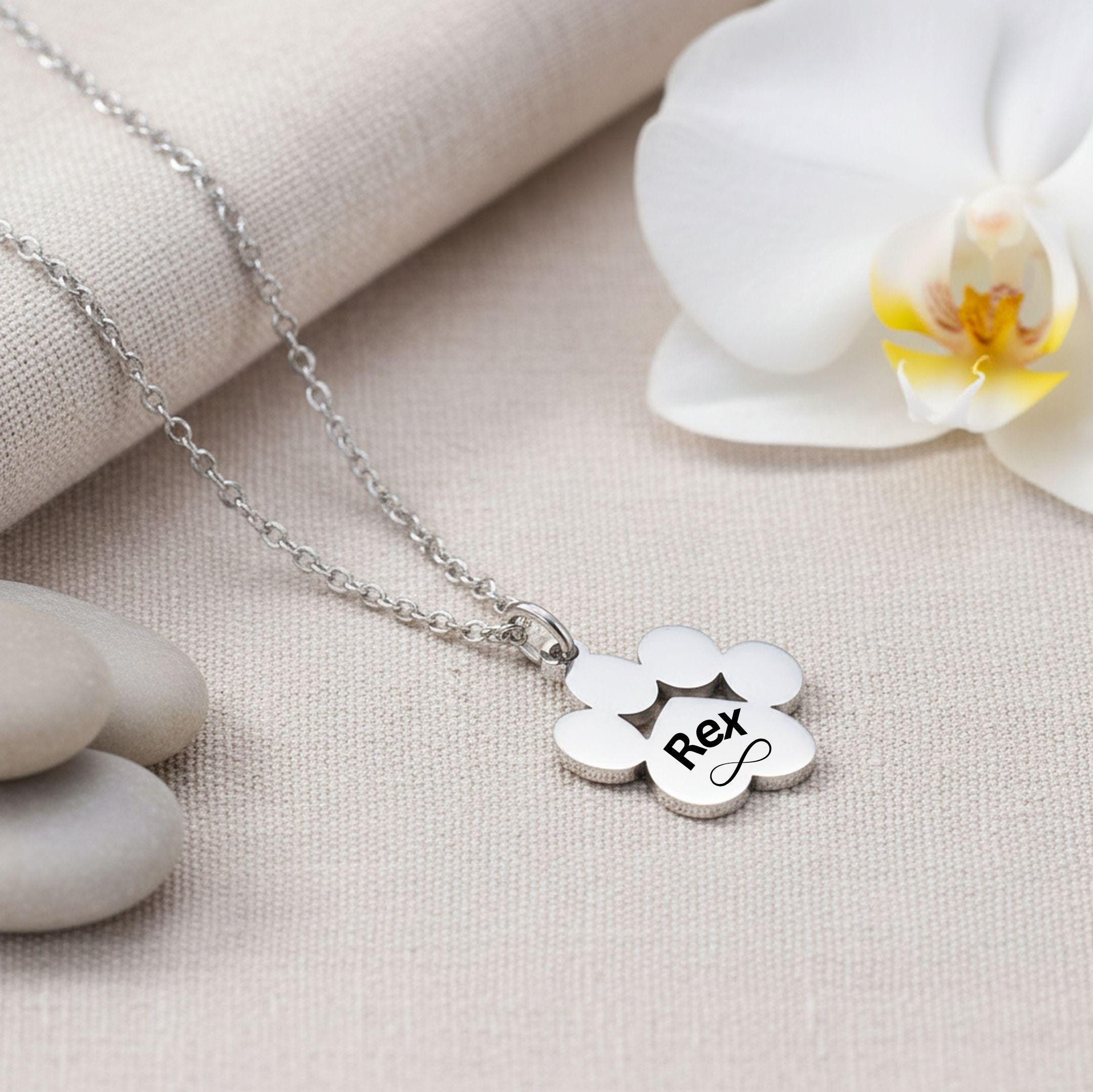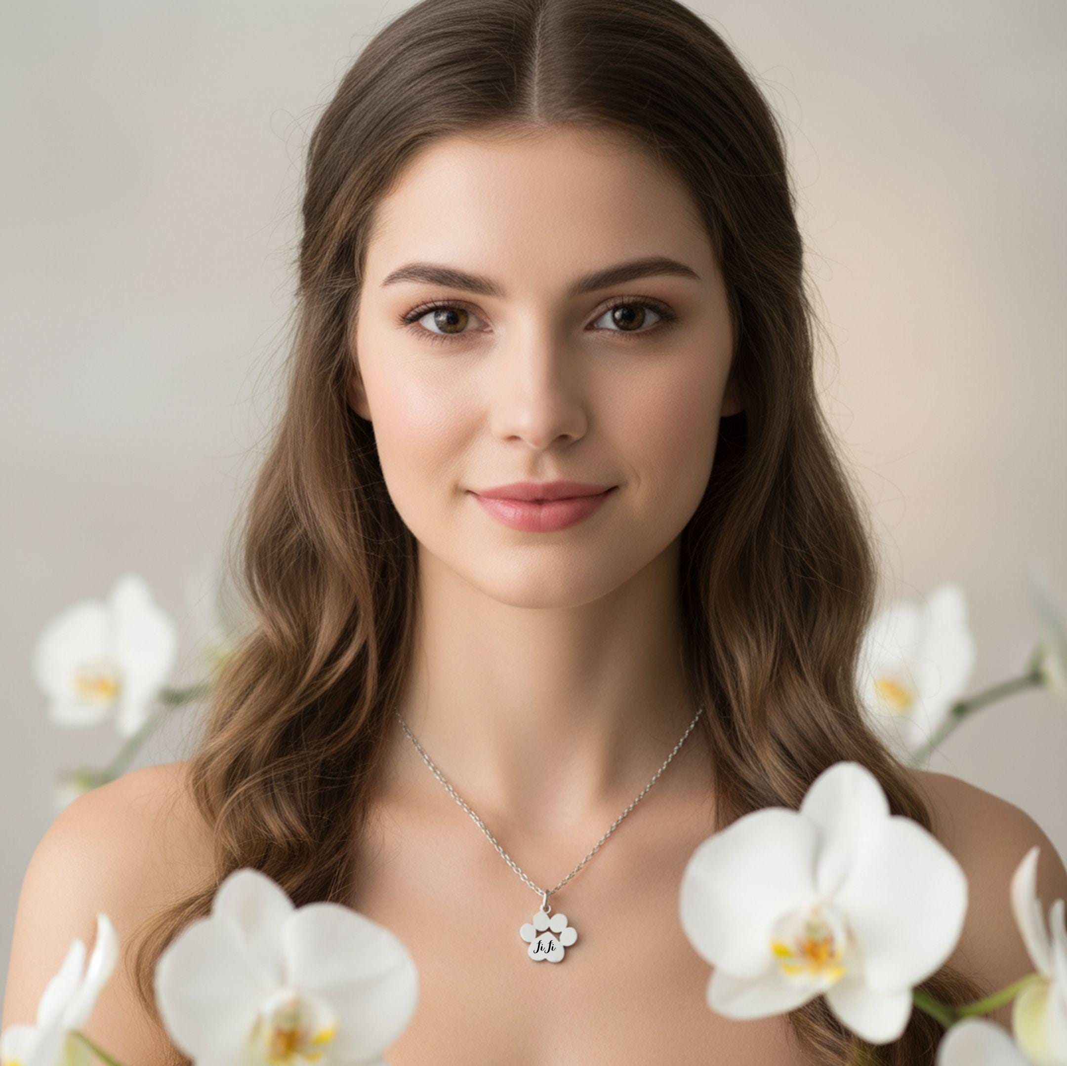 Each necklace is custom engraved with your pet’s name, making it a perfect gift for pet lovers, pet moms, and memorial keepsakes.