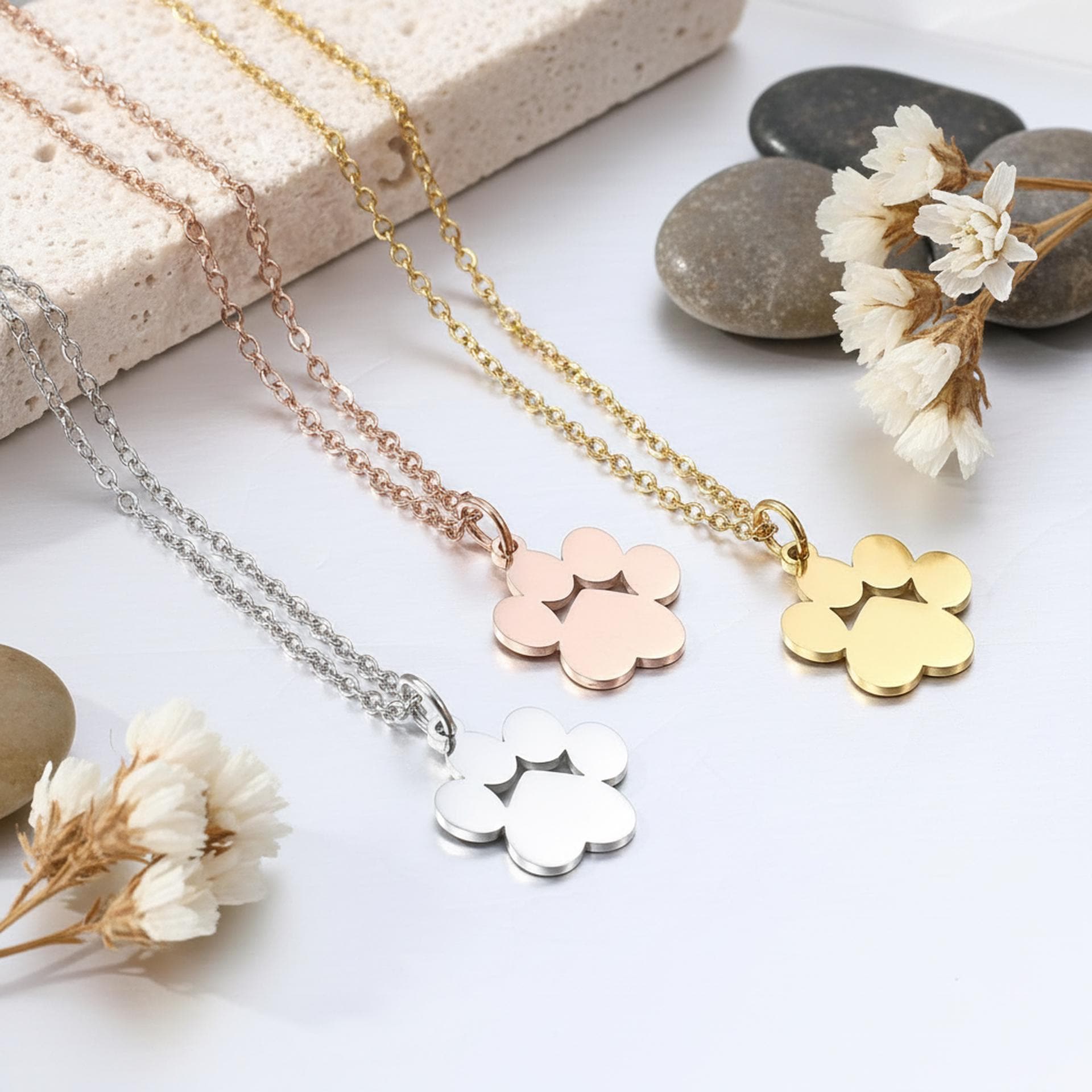 Celebrate the unconditional love of your furry companion with this beautifully crafted Personalized Paw Print Necklace. Whether it’s your loyal dog, playful cat, or a cherished memory, this piece is a meaningful way to keep them with you every day.