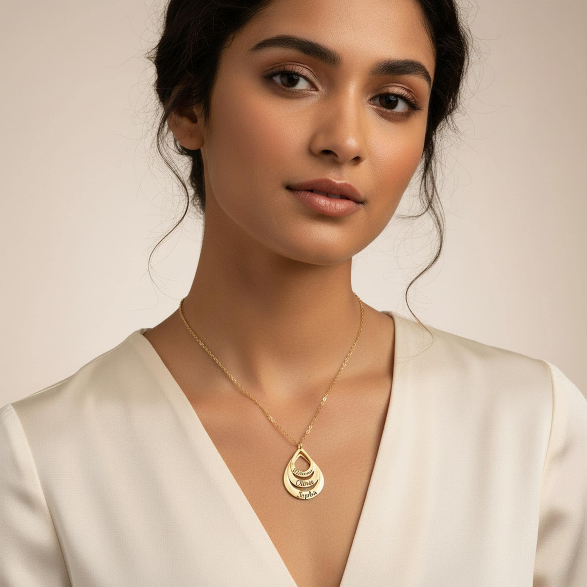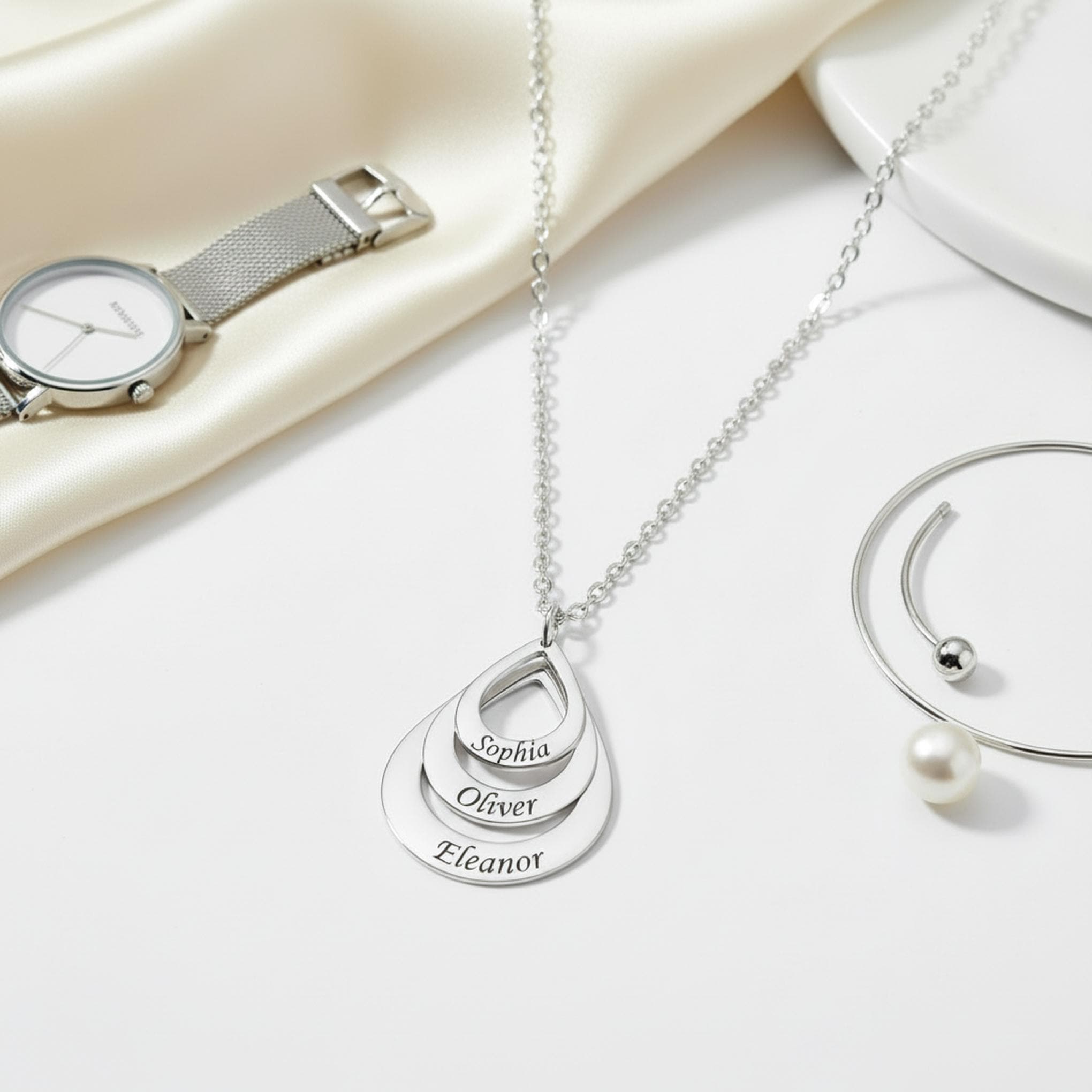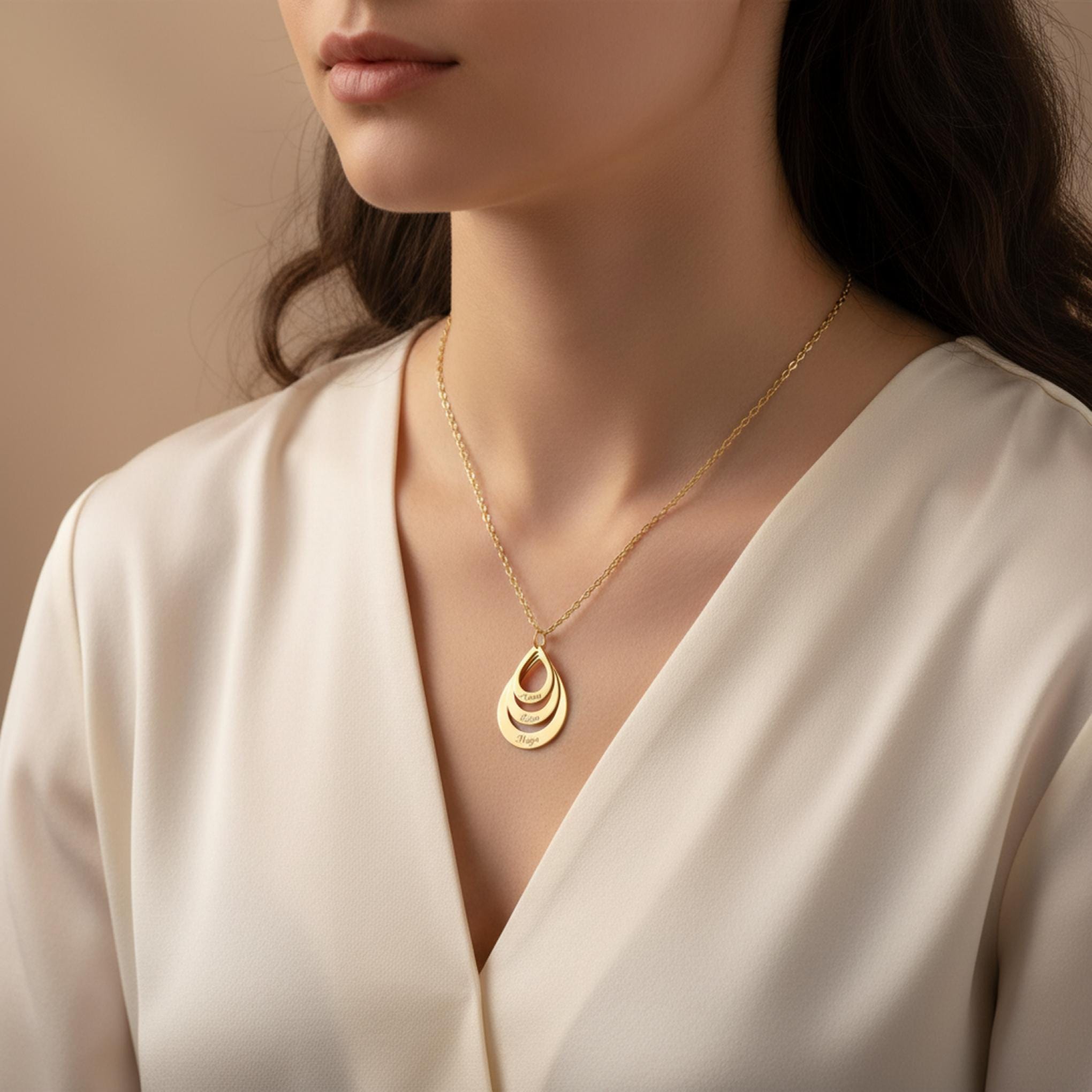 Celebrate the people who matter most with this elegant personalized teardrop pendant necklace. Featuring a layered open-drop design, this custom necklace can be engraved with up to 3 names, making it a meaningful keepsake for moms, grandmothers, wives, or anyone who loves personalized jewelry.