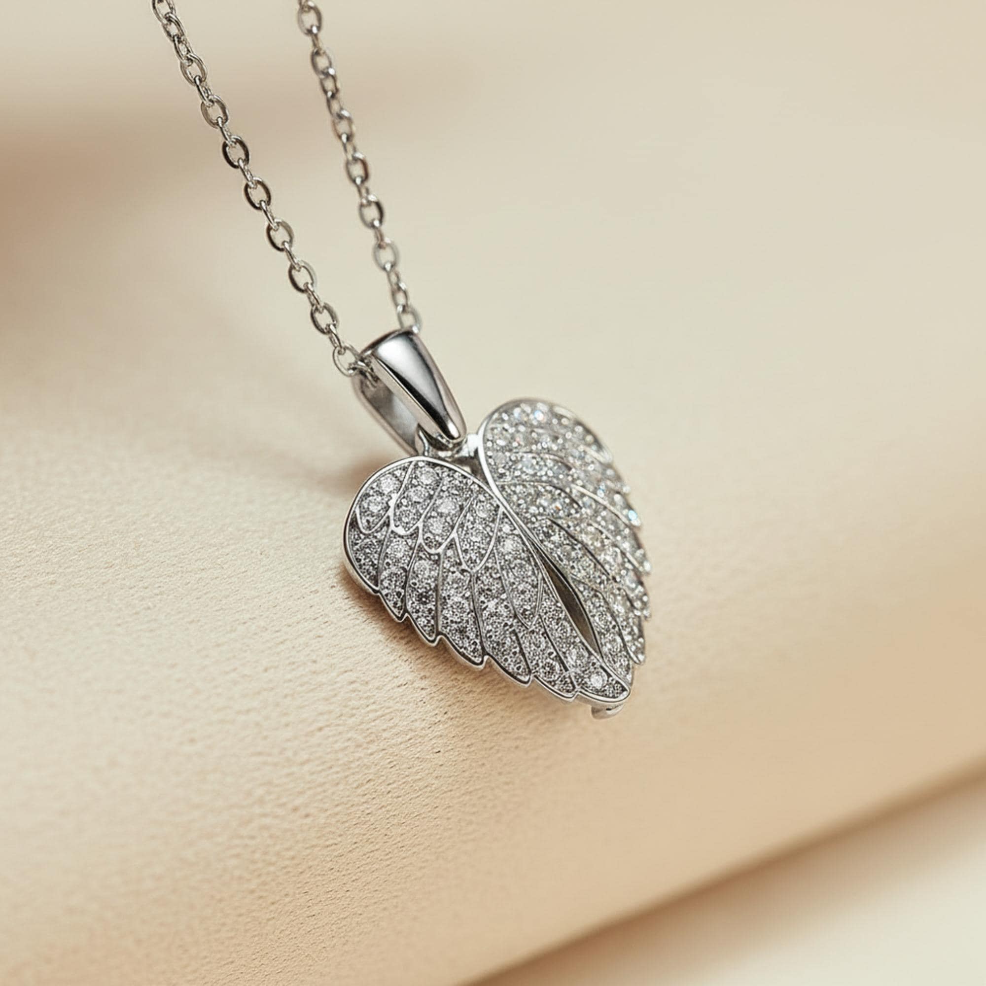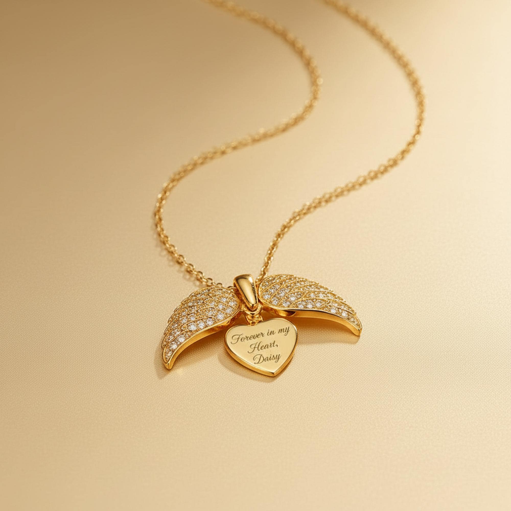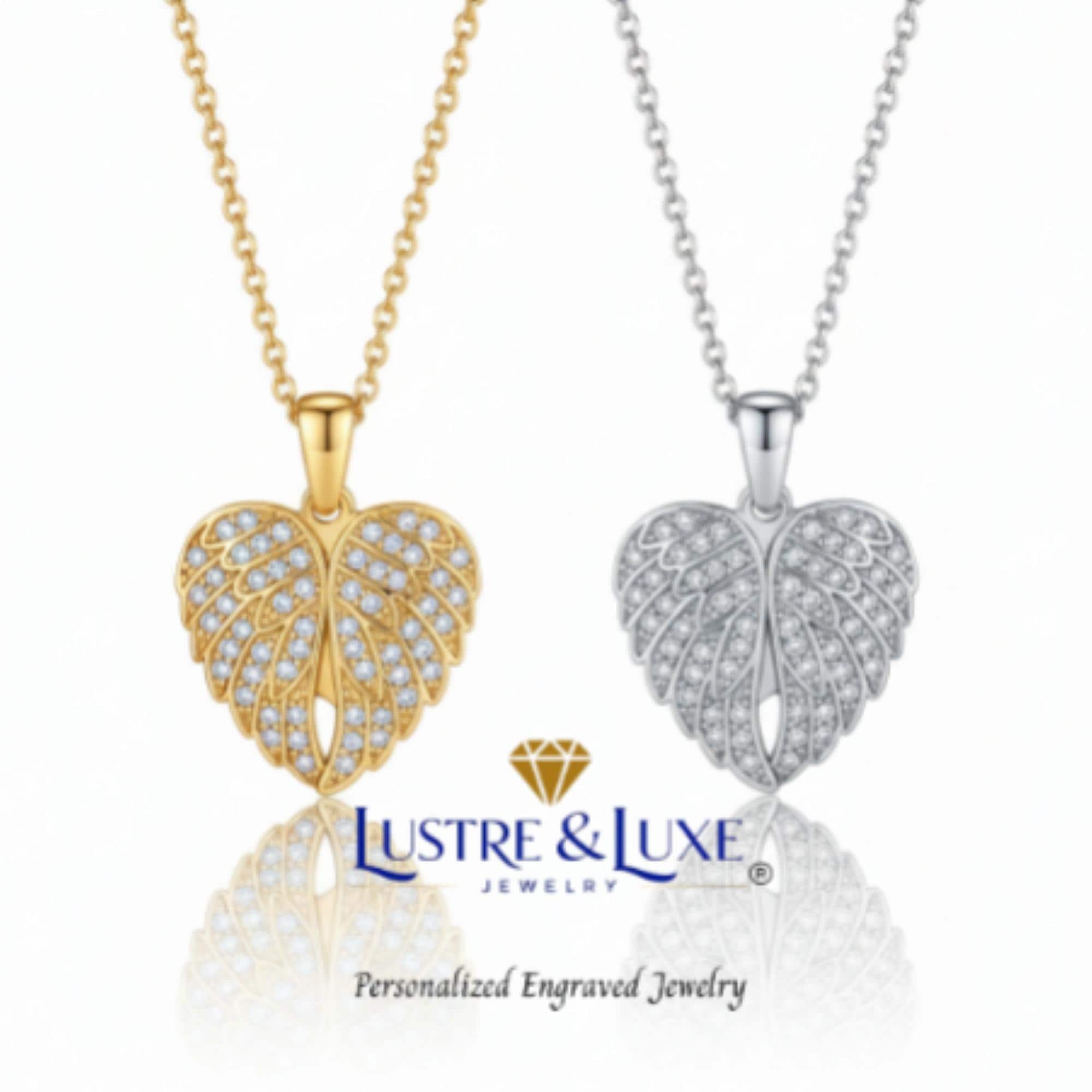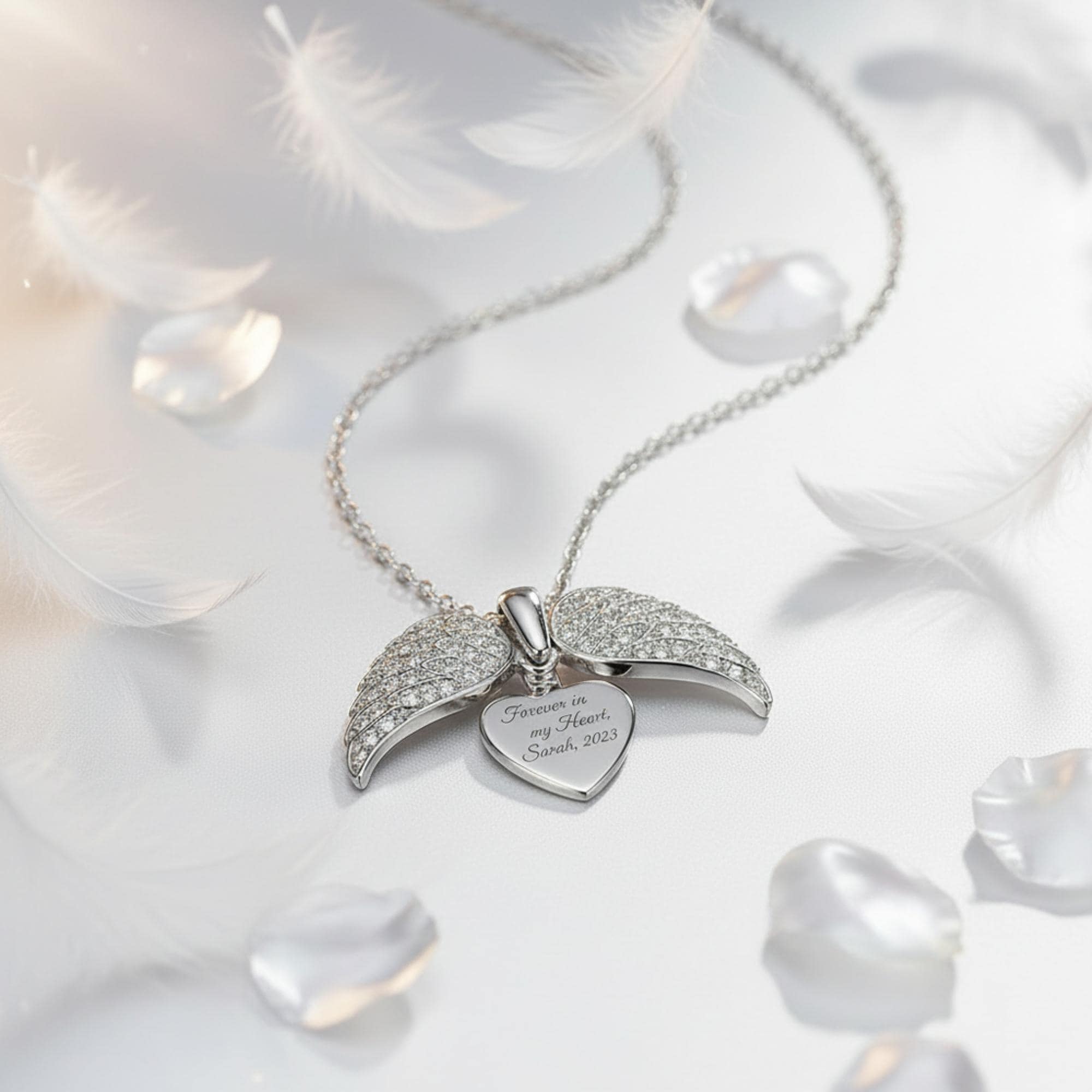 Engravable heart hidden inside angel wings