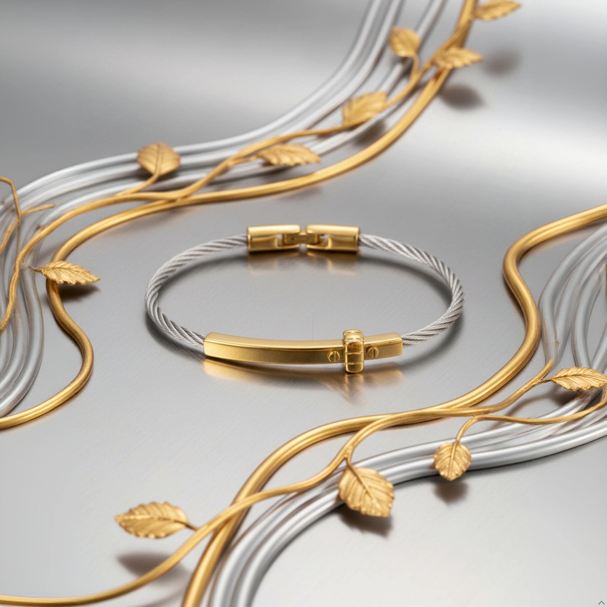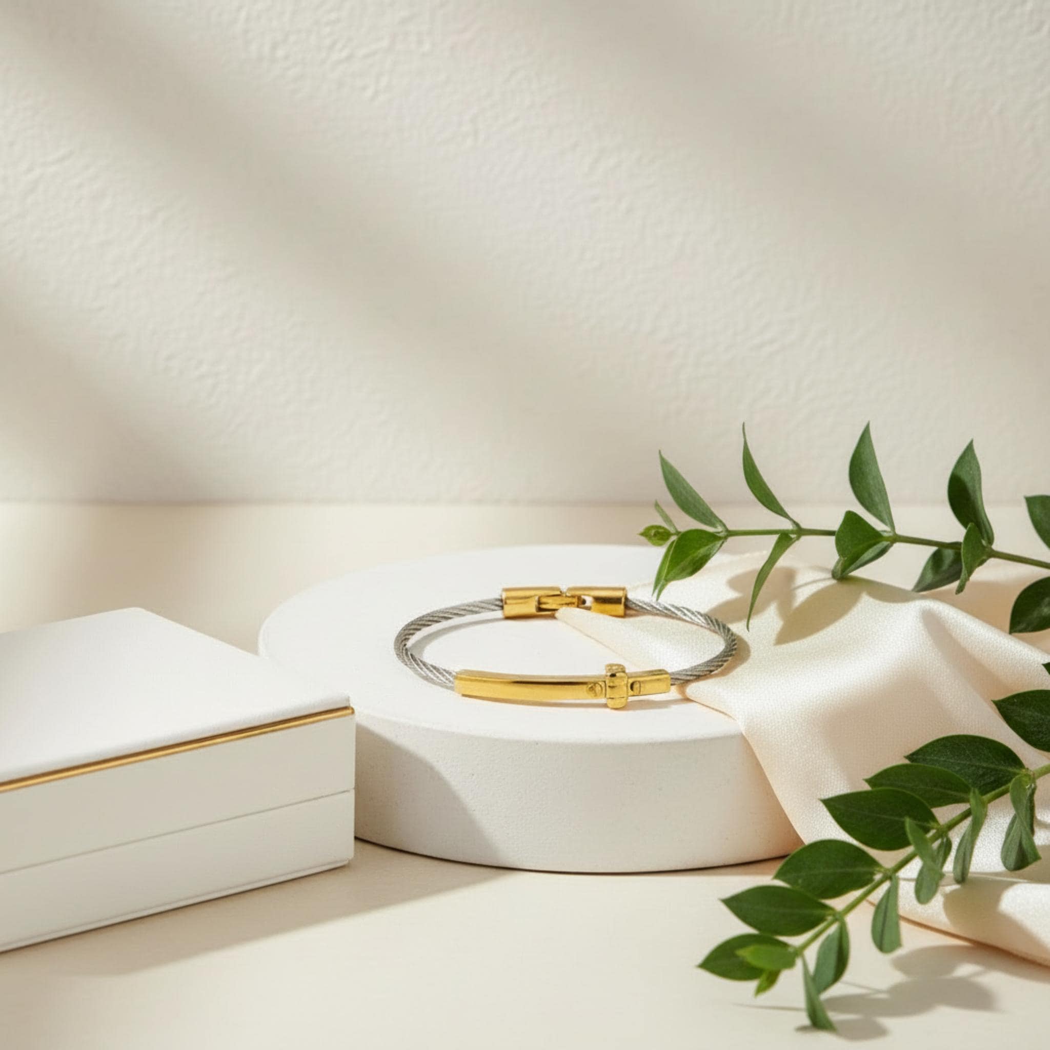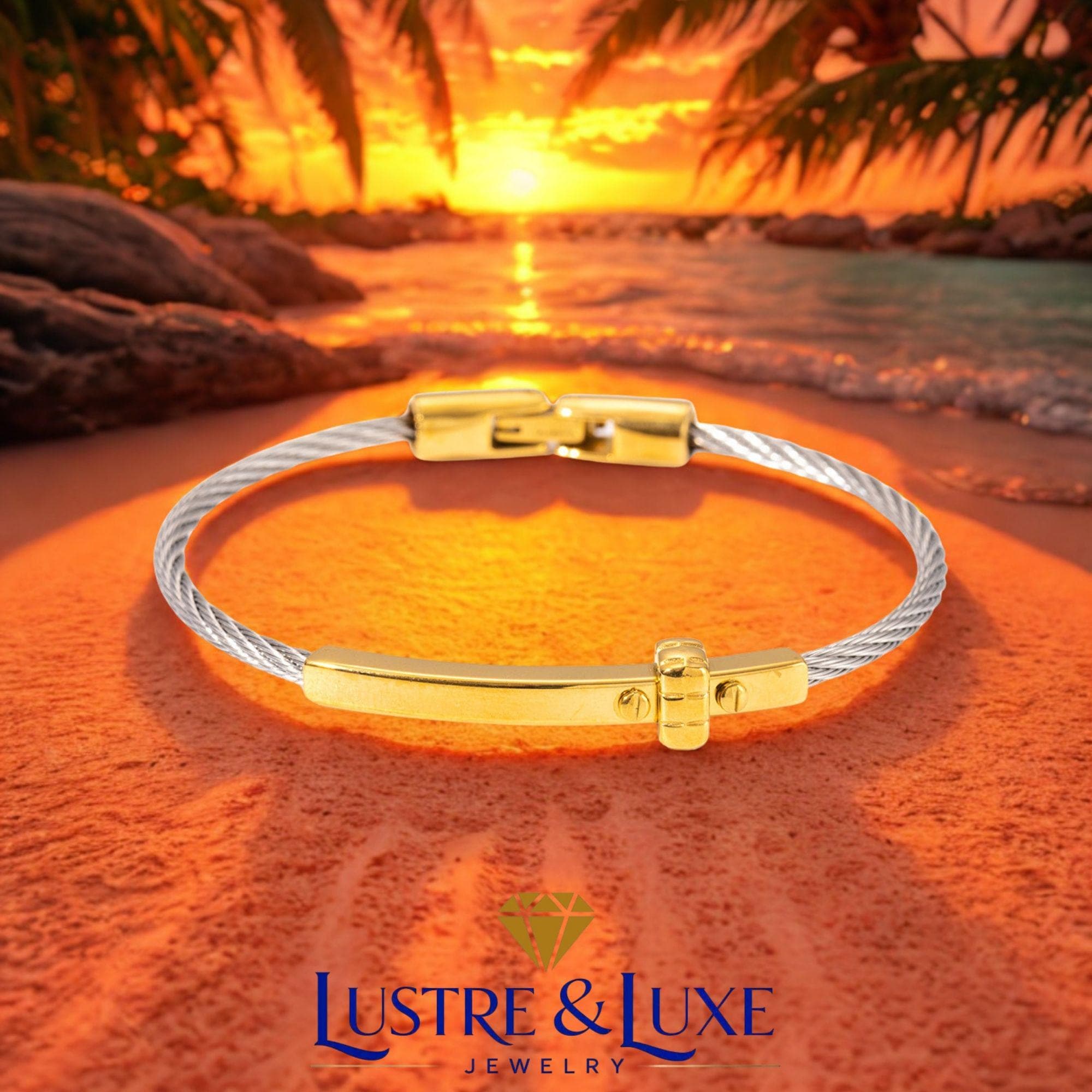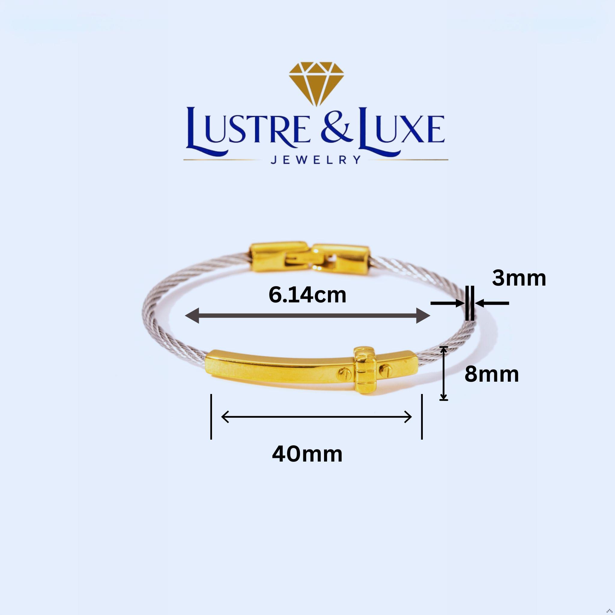 Its two-tone design makes it easy to pair with both gold and silver jewelry, while the sleek cuff style gives it a refined and modern look. Whether worn as a daily reminder of faith or given as a meaningful gift, this bracelet is a lovely piece for any jewelry collection.