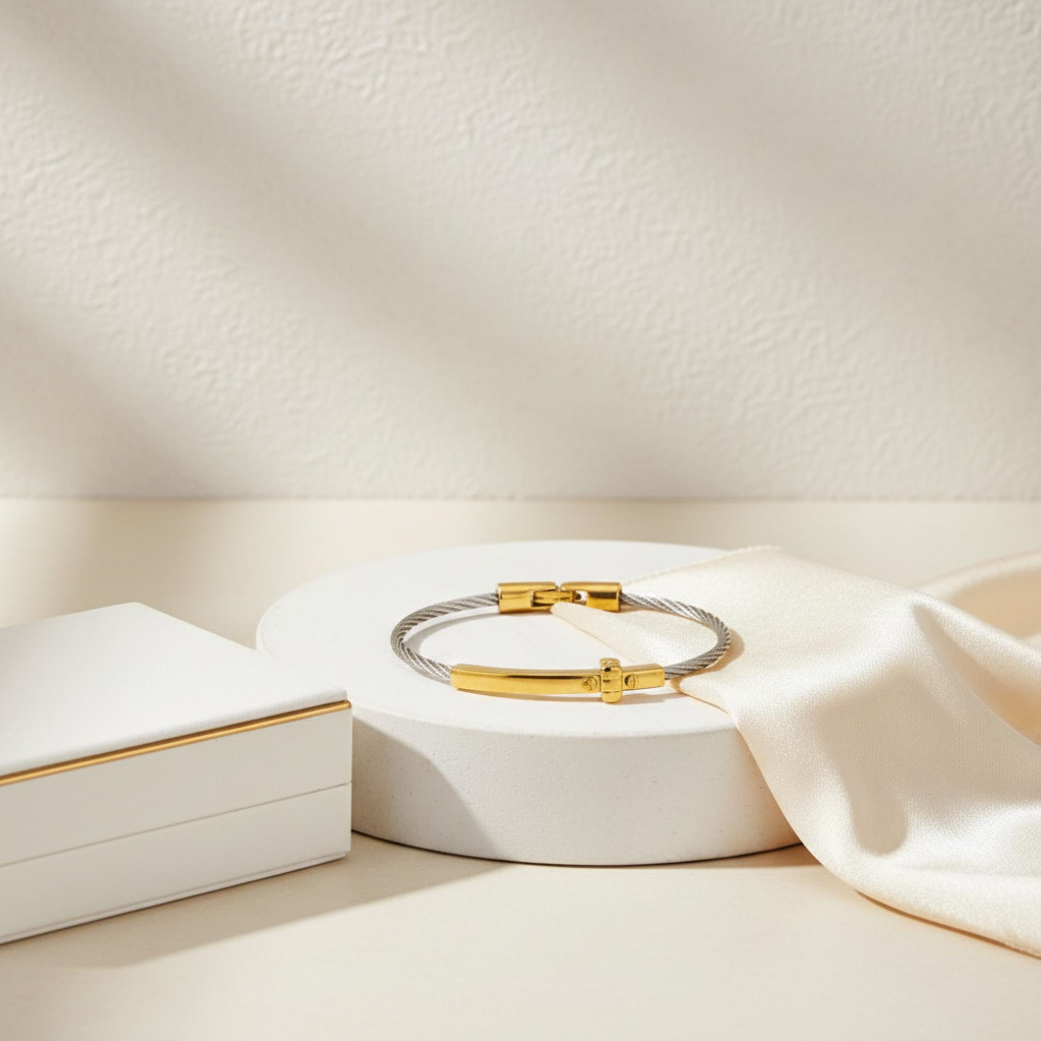 Celebrate faith and timeless style with this elegant cross bracelet for women. Designed with a silver-tone twisted cable band and a polished gold-tone cross centerpiece, this bracelet offers a beautiful blend of meaning and everyday elegance.